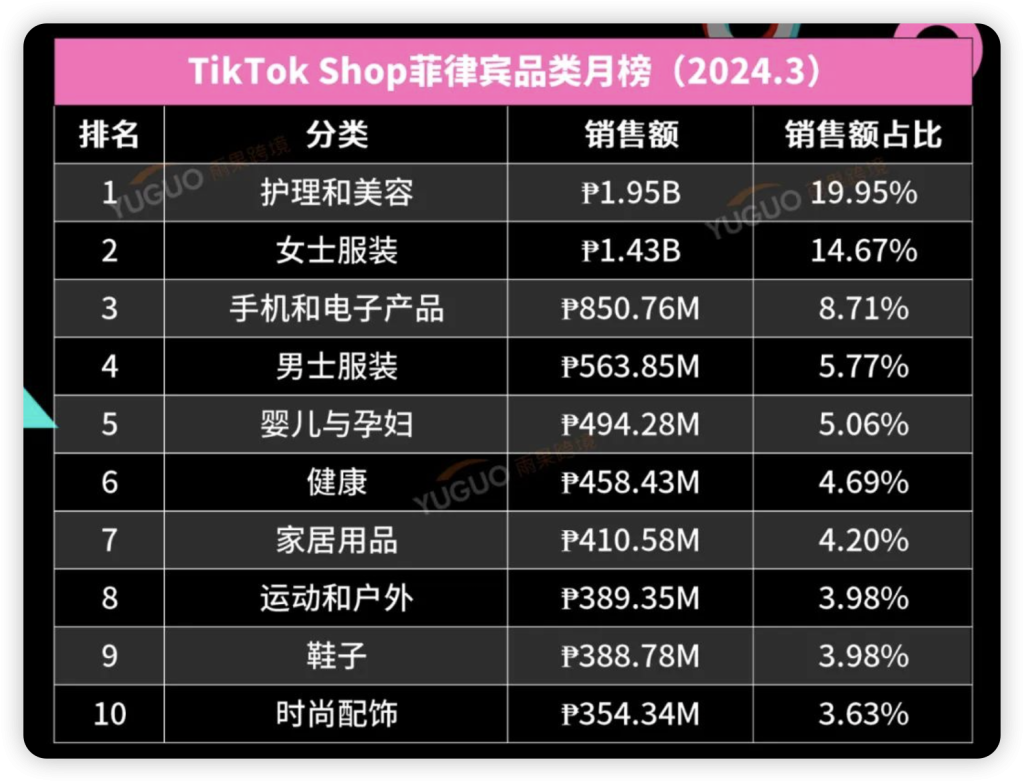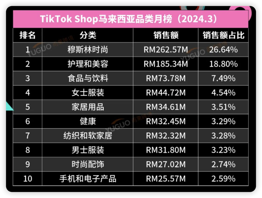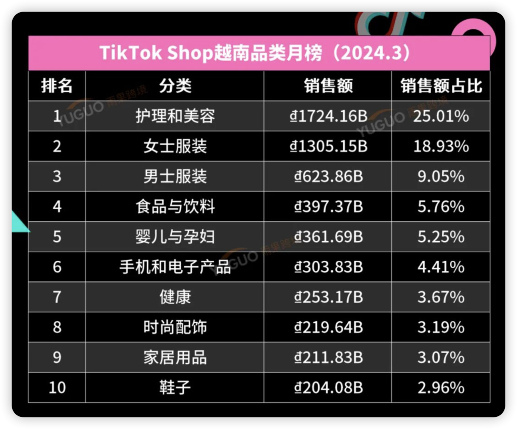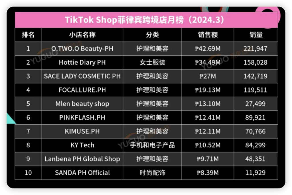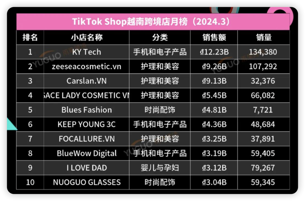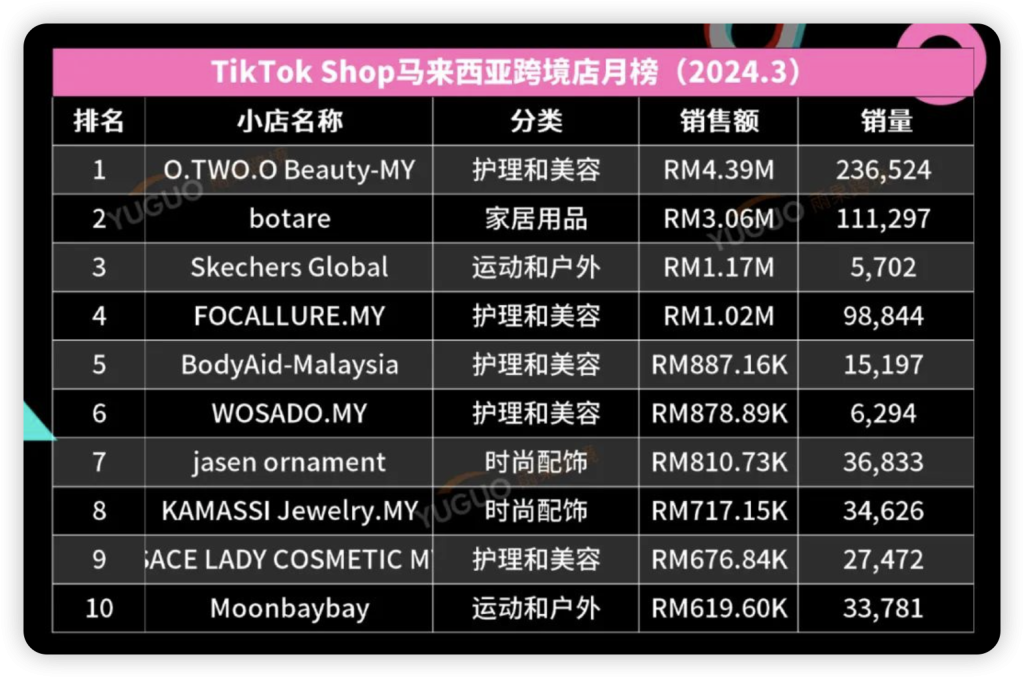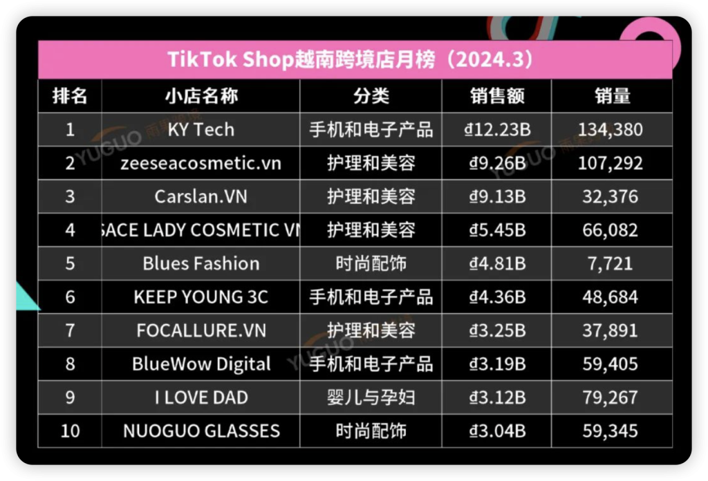 TikTok Shop东南亚3月销售榜单