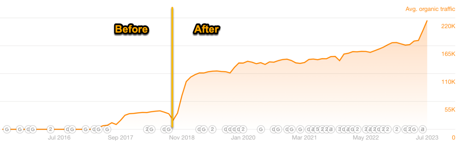 之所以会出现这种情况,是因为该主题需要新鲜的内容。搜索者不需要昔日的谷歌热门搜索列表,他们需要的是最新的内容。每一次下滑都发生在我们的内容变得陈旧的时候,而每一次上升都发生在我们更新页面的时候。