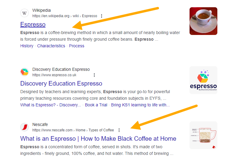 像 _"如何在家里制作意式浓缩咖啡而不使用咖啡机 "_这样的关键字 很容易让人猜出搜索背后的意图。信息就在关键字中:搜索者想学习如何在家里制作美味的咖啡,而不需要浓缩咖啡机。