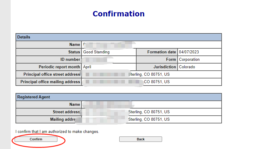 **申报方法:**在大多数州,您可以在线申报(在少数几个州,如科罗拉多州和爱达荷州,您实际上必须在线申报)。否则,您可以使用纸质表格进行申报。表格可能会邮寄给您,但更常见的是,您可以从所在州的商业网站(通常是州务卿网站)下载表格。